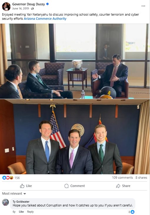 AZ Gov. @DougDucey also met with @YairNetanyahu in 2019. A year before @TPUSA stole 2020 from Pres Trump. 👀 "Enjoyed meeting Yair Netanyahu to discuss improving school safety, counter terrorism and cyber security efforts Arizona Commerce Authority." Not sus at all.