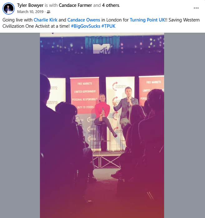 @DougDucey @YairNetanyahu @TPUSA @realannapaulina March 10, 2019 Tyler Bowyer, Charlie Kirk, Candace Owens in London for Turning Point UK. @TPointUK 2019 was a BUSY year for TPUSA.