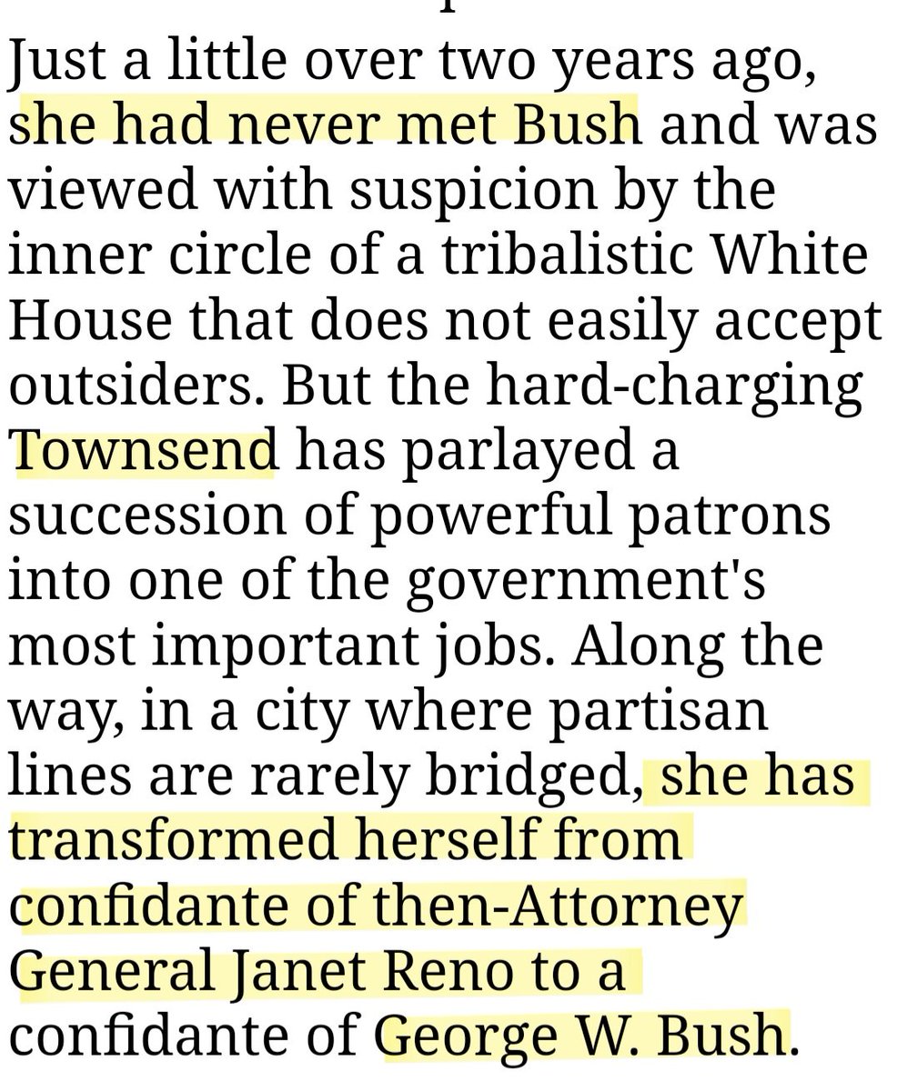 @AZKellyT @ATVI_AB @McCainInstitute @RudyGiuliani Townsend managed the Justice Department's Office of Intelligence Policy and Review until 2001. She was one of Reno's key advisers, acting as a "back channel" 👀 between the attorney general and FBI Special Agent John P. O'Neill. The FBI agent they killed in the WTC on Sept 11th.