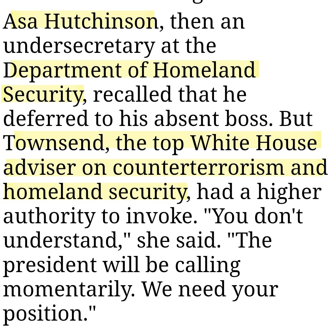 @AZKellyT @ATVI_AB @McCainInstitute @RudyGiuliani Townsend was gone from the DOJ by Sept 11, 2021. Instead, she served as Assistant Commandant for Intelligence for the US Coast Guard, updating intelligence legislation to switch the branch's priority from drug smuggling to the vulnerability of U.S. ports after Sept 11th.