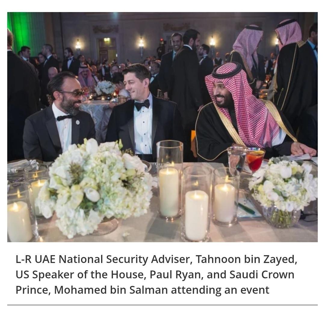 @AZKellyT @ATVI_AB @McCainInstitute @RudyGiuliani @AsaHutchinson @GovMikeHuckabee @SarahHuckabee House Speaker @PaulRyan sitting between UAE National Security Adviser, Tahnoon bin Zayed and Saudi Crown Prince, Mohamed bin Salman (MBS) 🙄