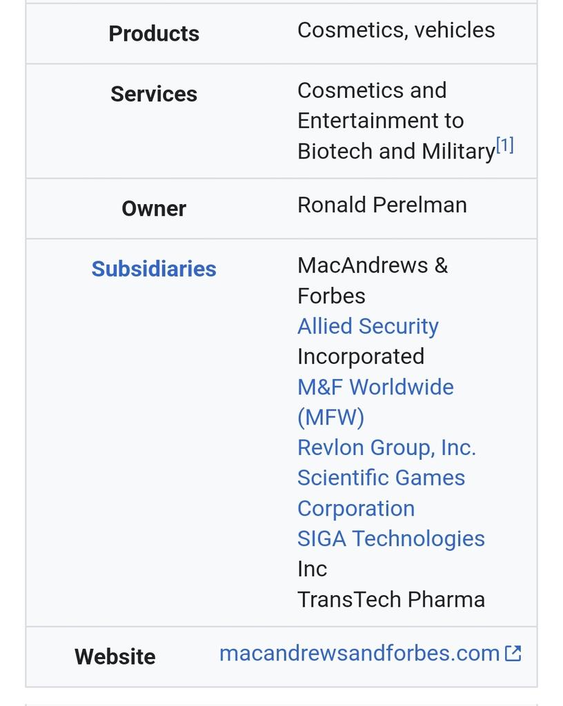 @AZKellyT @ATVI_AB @McCainInstitute @RudyGiuliani @AsaHutchinson @GovMikeHuckabee @SarahHuckabee @PaulRyan MacAndrews & Forbes Subsidiaries: MacAndrews & Forbes Allied Security Inc. 👀 M&F Worldwide (MFW) Revlon Group, Inc. Scientific Games Corp SIGA Technologies Inc TransTech Pharma Where have we seen Allied Security before?