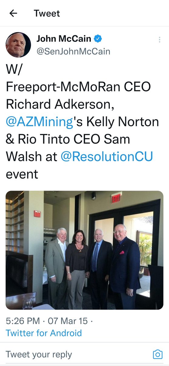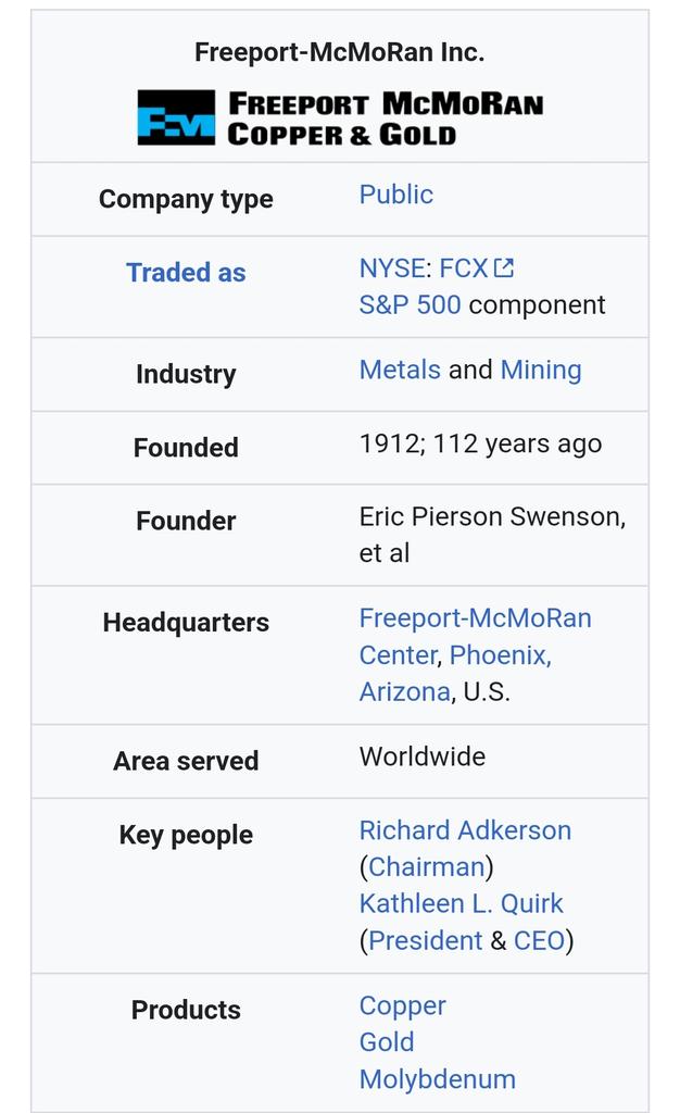 @AZKellyT @ATVI_AB @McCainInstitute @RudyGiuliani @AsaHutchinson @GovMikeHuckabee @SarahHuckabee @PaulRyan Townsend is also a director on the board of Freeport McMoRan HQ in Phoenix, Arizona. 🔥 Townsend = Intelligence, Video Games, Insurance, now Mining. Kathleen L. Quirk, President and CEO. Freeport operates the world's largest gold mine, the Grasberg mine in Papua, Indonesia.