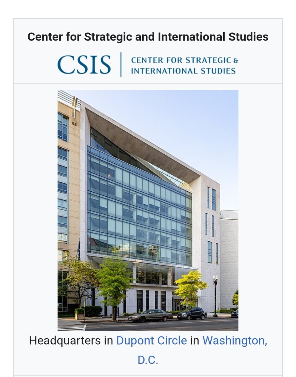 @AZKellyT @ATVI_AB @McCainInstitute @RudyGiuliani @AsaHutchinson @GovMikeHuckabee @SarahHuckabee @PaulRyan Townsend, cont. ...the Center for Strategic and International Studies https://en.m.wikipedia.org/wiki/Center_for_Strategic_and_International_Studies