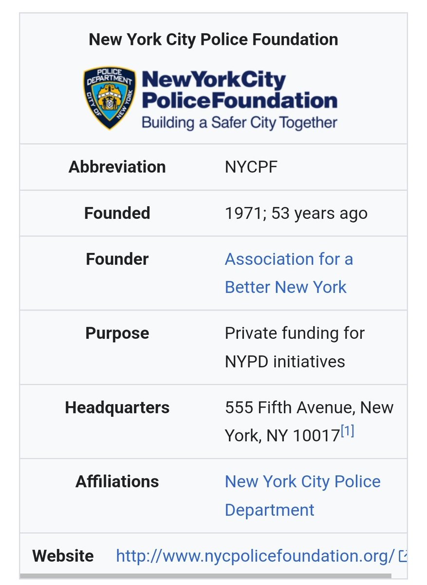 @AZKellyT @ATVI_AB @McCainInstitute @RudyGiuliani @AsaHutchinson @GovMikeHuckabee @SarahHuckabee @PaulRyan ...and the New York City Police Foundation. There's Rudy's friend and Trump Pardon, @BernardKerik. In July 2001 Police Commissioner Bernie Kerik granted them the right to license and use the NYPD's trademarks and logos to raise funds. https://en.wikipedia.org/wiki/Bernard_Kerik