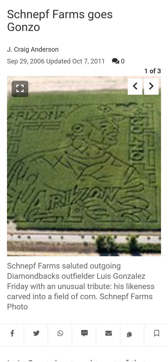 Schnepf Farms goes Gonzo 😂 The SCHNEPF's surprised Gonzo with the cornfield carving when he retired. DAVE PRATT was there DJ'ing on KMLE (107.9 FM), who put LARRY KING on the phone to say Congrats to Gonzo! 😂 Larry King and CARLOS SLIM are friends and business partners. https://www.eastvalleytribune.com/news/schnepf-farms-goes-gonzo/article_8af071b8-624e-51a7-8e1d-6949e7aacf62.html