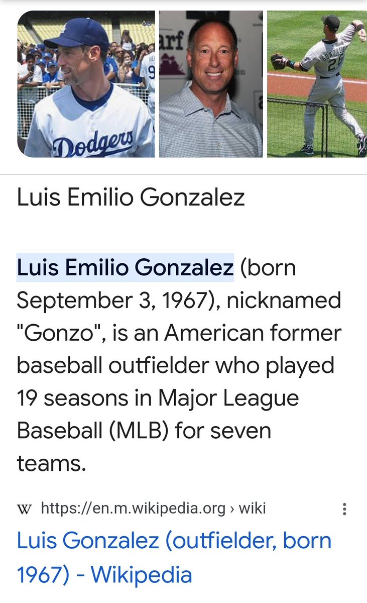 Luis Gonzales is "Gonzo". Playing for the Arizona Diamondbacks, Gonzo hit the game winning hit to win the 2001 World Series. https://en.wikipedia.org/wiki/Luis_Gonzalez_(outfielder,_born_1967)