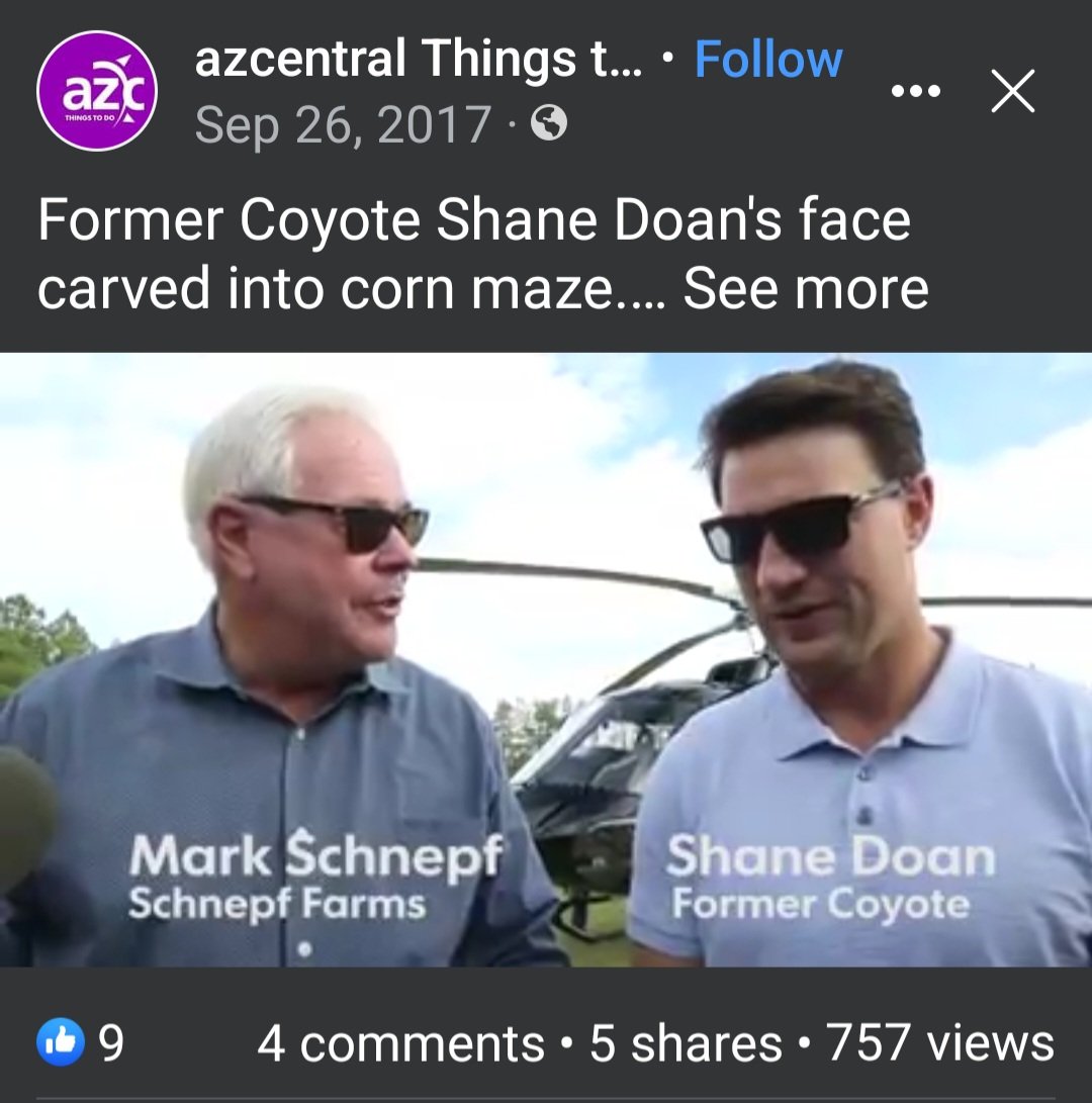 @drewsexton23 @laurenboebert @MittRomney @KariLake @Brookfield @RogerJStoneJr @LuisGonzo You can't make this Mafia shit up! The following year, Gonzo introduces the next celebrity corn maze featuring former Phoenix Coyote, Shane Doan! 🤣 Shane just came up in our Mafia DIG on Truth Social.