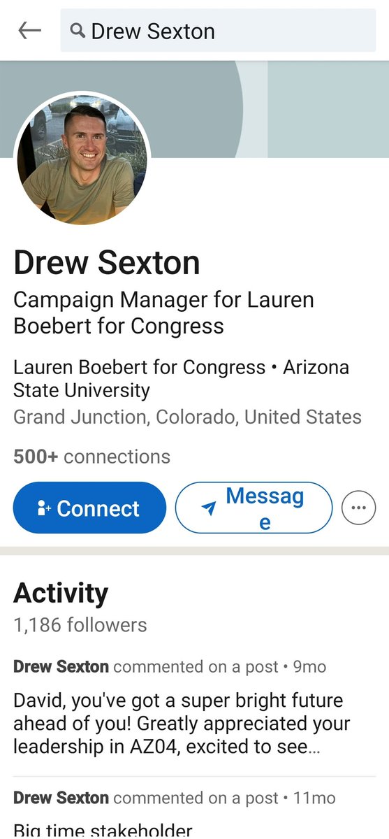 Remember when we told you the other night, @drewsexton23 from the Arizona Mafia works for @laurenboebert?