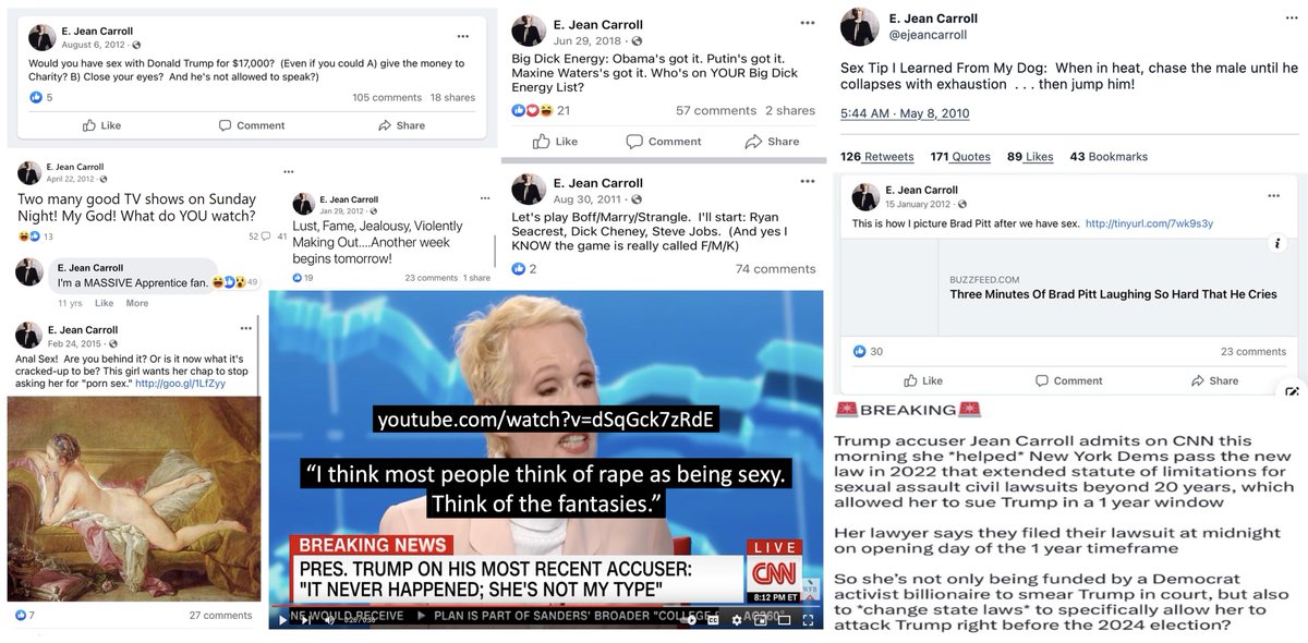 @thevivafrei "Would you have sex with Donald Trump for $17,000 ... and he's not allowed to speak?" "I'm a MASSIVE Apprentice fan!" "Who's on YOUR Big Dick Energy List?" "I think most people think of rape as being sexy. Think of the fantasies.” "Anal Sex! Are you behind it?" — E Jean Carroll https://t.co/jf2OSq3rSb