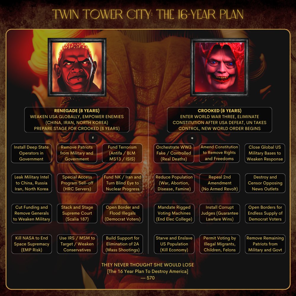 LONG FORM SUMMARY OF THIS THREAD The original Cabal plan was to shut down the world for 10+ years while they prepared sufficient stocks of the bioweapon injections. Then they would introduce the "fully tested and approved vaccines" and make them 100% mandatory. The planned ten-year lockdown, economic collapse, martial law, and food/energy shortages would kill hundreds of millions through disease and starvation. Then the injections would finish off most of the remaining weakened populace. The goal of the Cabal was to reduce the global population to 500 million, as written on the Georgia Guidestones. This is all part of their Great Reset agenda to create a globalist communist New World Order, where everyone is tracked, monitored, injected, and completely reliant on The State (following the CCP model). The CCP and Cabal have infiltrated most governments and corporations around the world. They control the mainstream media and world leaders through bribery, blackmail, honeypots etc. They also control major global organizations like the WHO, IMF, World Bank etc. to ensure the entire world adheres to their narrative. But President Trump outplayed them. He knew the enemy's gameplan, so he used Operation Warp Speed to force them to accelerate their plans and deploy the plandemic before they were ready. The Cabal couldn't mandate their experimental injections because they hadn't completed long term testing and approval. They didn't have sufficient supply to inject everyone with the bioweapon, so most people got saline. Because the "vaccine" was made available quickly, this destroyed the Cabal's plan for a ten-year global lockdown. President Trump also spent his first term dismantling trust in the mainstream media. He baited the Cabal into relentlessly attacking him with made-up stories that always ended up being exposed as fake news. Faith in the mainstream media is at all time lows. Simultaneously, President Trump promoted alternative/independent media sources. This strategy, alongside the Patriot Intelligence Board project, means enough people can now see through the MSM propaganda, ensuring that the Cabal narratives have become unsustainable. The Cabal leaders prefer to hide in the shadows, but by deploying the plandemic before they were fully prepared, they were forced into the spotlight. Their plan was exposed to an increasingly awakened population. President Trump saved the lives of billions, and placed the globalist leaders on center stage where we can all see them. He let them think they got away with stealing the election, and he placed P-Pete, a senile child sniffer, into the spotlight to further weaken the Democrat party. President Trump took these actions to SHOW people what life would be like under a one-world fascist/communist dictatorship. Under P-Pete we've had inflation, recession, food/energy shortages, record gas prices, no baby formula, Ukraine war, stock market collapse, Afghanistan mess etc. We saw how the Cabal suppressed cures like HCQ and Ivermectin. And how they released the Chinavirus with the help of the CCP in Wuhan. We saw how they forced infected people into nursing homes to pump up the death toll. And how they used fake statistics and PCR tests to inflate the real death count. We saw how they used COVID to justify mail-in ballot fraud. And how they use Antifa/BLM to riot, loot, burn and terrorize the country. We saw how they lied relentlessly about the "100% safe and effective vaccine" but still forced injected people to wear muzzles anyway. And we see how they're flooding the country with illegal migrants, while denouncing voter ID, and saying illegals don't need to be tested for COVID. President Trump also also exposed the insecure voting machines. He showed how the Cabal uses fake news and fake impeachments to build false narratives. And how they weaponize the DOJ and FBI against the people. President Trump exposed the enemy. So now, every time the Cabal releases some new piece of propaganda, it's immediately torn apart and debunked all over social media by millions of anons. So their Great Reset agenda is crumbling before their eyes, overtaken by The Great Awakening. Trump’s presidency is a military operation. He forced the Cabal out of the shadows, motivating the people to rise up against tyranny worldwide. This is all part of The Great Awakening. It had to happen this way. Nothing can stop what is coming. Nothing.