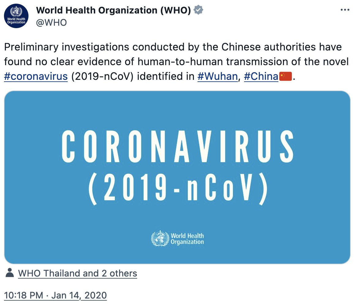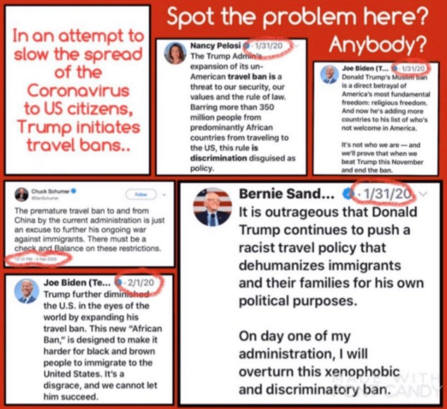 On 14 Jan 2020, the WHO said there was no evidence of human-human transmission and insisted borders should remain open. When President Trump ignored this WHO misinformation, and closed the US borders anyway, he was accused of racism by Democrats and mainstream media.