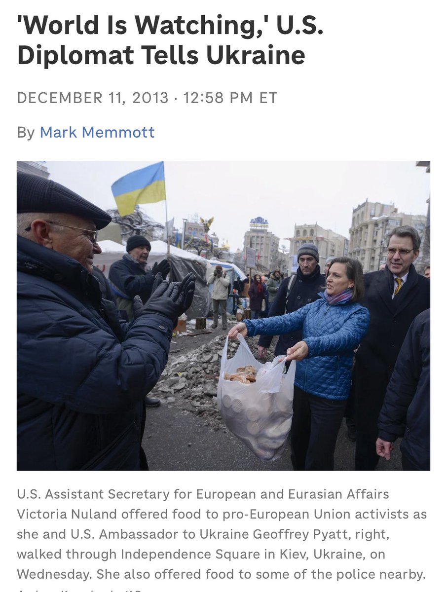 In 2014, the U.S. state department led by jews like Victoria Nuland, staged a coup against the duly elected president Victor Yanukovych. What was Yanukovychs crime? He was too pro Russian, and was not necessarily going to push the boundaries for NATO expansion. So you can see the international jews went to work, with George Soros funding dissidents, the Jewish American media machine saying Yanukovych was not elected properly, and Jewish state department rep Victoria Nuland even handing out cookies to Ukrainian dissidents. This led to Putin invading and annexing the Crimea. 🧵 11/18