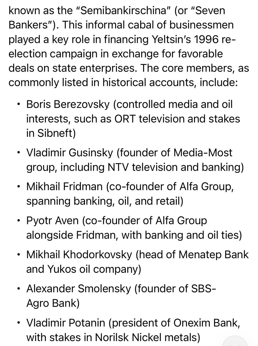 Well what’s the problem? Didn’t the Russian people love NATO expansion, economic liberalism, and de-nuclearization? As usual, the United States “sells liberalism” but what they mean is economic exploiting by Jewish capitalist. And Russia was no different. It didn’t take long for the “Semibankirschina” (7 bankers) to own a majority of the assets, and they exploited the Russian people accordingly. And yes most of them were Jews. 🧵 4/18