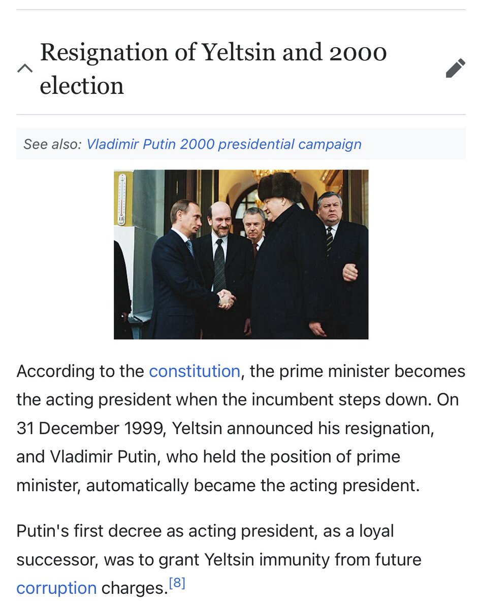 This led into the Russian financial crisis, and ultimately paved the way for a more nationalistic leader to come in. The people were aware of who their exploiters were. They also saw how chummy Yeltsin was with these Jewish oligarchs. Yeltsin was nervous he would be killed during the political unrest, so he needed a strong leader to take over for him, that would also agree to “pardon him.” That politically savvy, and strong leader, was Vladimir Putin. 🧵 5/18