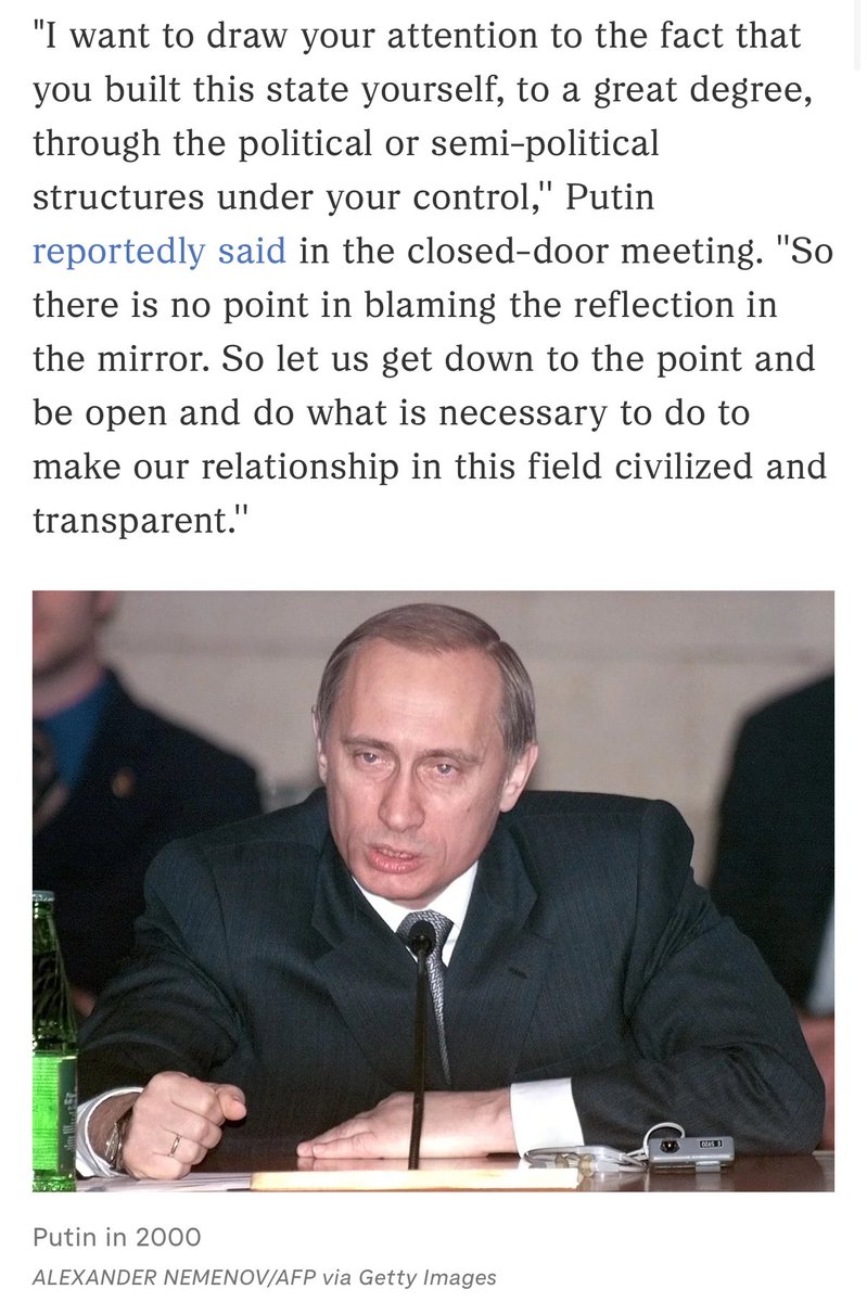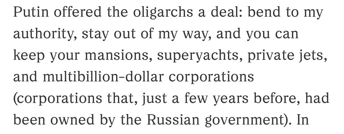 One of the first things Putin did as president was meet with 20 or so of the rich men in Russia. (The predominantly Jewish oligarchs.) He told them flat out, the days of exploitation are done. They could still be rich, but they would have to stay out of his way, and the people would be served first. 🧵 6/18