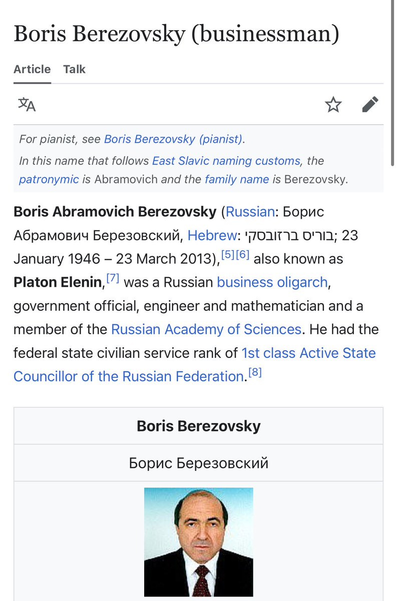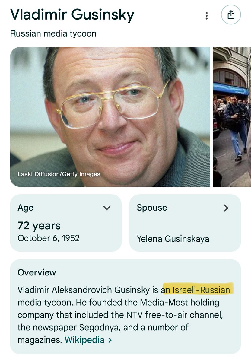 Now, these Jewish billionaires did not take to that too kindly, but they shortly found out that Putin was not someone they could simply buy with money, or blackmail with Jeffrey Epstein schemes. Putin started dismantling these Jewish oligarchs from power one by one… -Vladimir Gusinsky -Jew ✡️ -Mikhail Khordorkovsky- Jew ✡️ -Boris Berezovsky- Jew ✡️ -Mikhail Prokhorov- Jew ✡️ This isn’t to say, he randomly singled out Jewish oligarchs. There are still Russian Jewish oligarchs today, but they respect the power that Putin holds. He only went after the ones that were undermining him and Russia, and in doing so he was able to return some assets to the state, and take control of some Of the media companies. 🧵 7/18