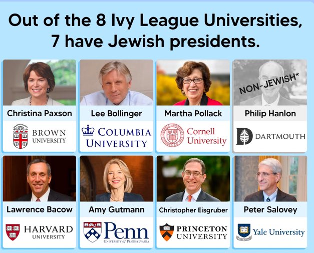 Jews would have to use their intellectual power to control the minds of the youth through education. They would get into many Ivy League president positions, and push DEI and anti White studies. (Picture dated, I believe currently it is only 50% Jewish controlled) You’d Even kick out the black liberal Ivy League presidents if they don’t support Israel and Jews enough like Claudine Gay… 🧵 10/20