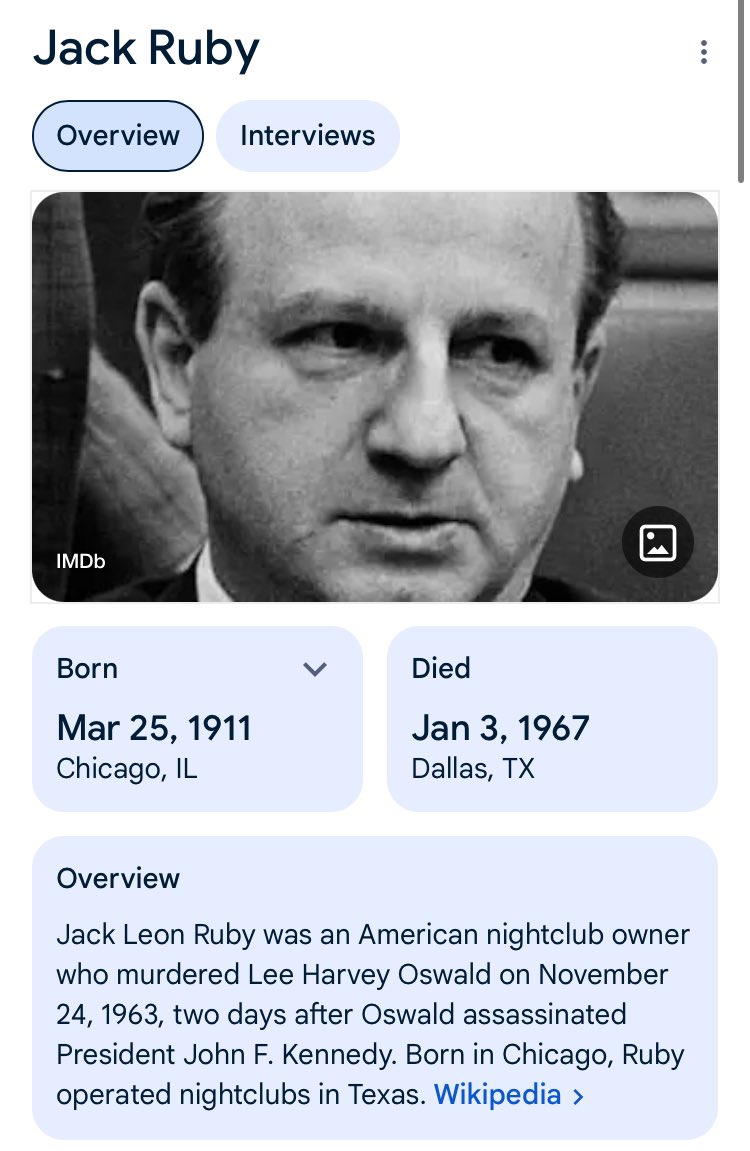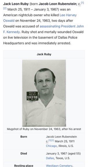 The man who shot Oswald would be Jewish, and would have obvious ties to the Jewish Mob like Jack Rubenstein. 🧵 2/14 https://t.co/1RD9eBE1oE