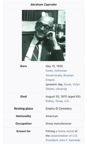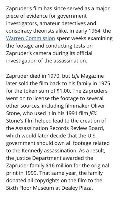 The person who shot the famous Zapruder film would be a Jew like Abraham Zapruder. He would then turn that film into 1.5 million dollars but try to make sure the public didn’t see it. 🧵 4/14 https://t.co/Ys1EHgTWu5