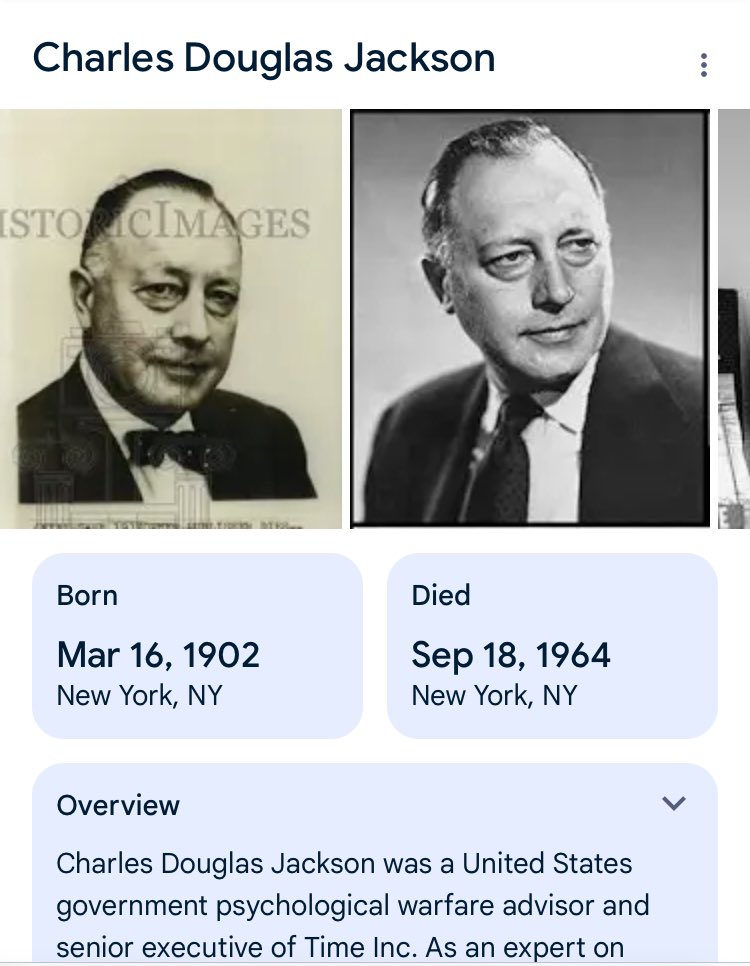 The real reason they couldn’t let the public see this film, was because it obviously destroys the fake magic bullet theory, and the idea Oswald made a next to impossible shot on his own. Once you see Kennedys head flying back you can tell he wasn’t shot in back of the head. Further, why would Life magazine give out 1.5 million dollars for something they were never going to show the public? They wouldn’t. They were helping cover it up. CD Jackson was the publisher at Life magazine at the time, (likely Jewish) and had experience in the psychological warfare department in the Office of War information during world war 2. If we weren’t supposed to see it how did we get the Zapruder film anyway? 🧵 2/12