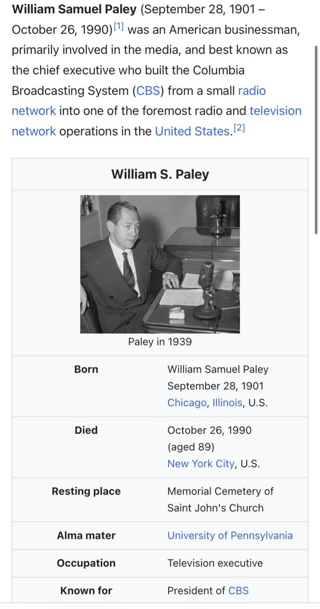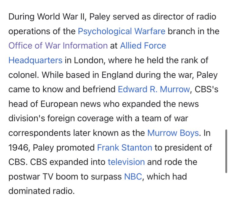 Back to the Zapruder Film. Do you know the public was told about it in 1963? Dan Rather got up on CBS news and described viewing the film, but they didn’t show it of course. And he described it just like the Warren Commission would want him to. A precise lie. They already know what needs to be said in order for it to match the warren commission. He specifically says that Kennedys head flies forward because he was shot in the back of the head by Oswald. 🤥 But who owned and started CBS? Who would green light this obvious lie? Williams S. Paley. Another Jewish Zionist. And guess what. He served in the same Office of War information department as CD Jackson during world war 2. You know, the guy mentioned early on who “bought” the Zapruder film so it wouldn’t be seen by the public? 🧵 5/12
