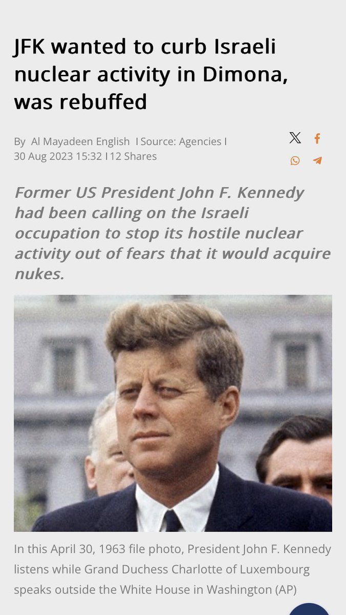 We’ve covered all the Zionist Jewish gatekeepers over the years, but what was the why for hit? The why, was that JFK did not want Israel to have a nuclear program, and the Israelis saw that as existential. If you read the letters between JFK and Ben Gurion, the point of contention is obvious. Once JFK was shot, the most Israeli friendly president Lyndon Johnson took his place. If that sounds crazy to you, dig a little deeper. As soon as Lyndon Johnson came to power, he looked the other way on Israel’s nuclear ambitions. Further he looked the other way when Israel attacked the USS liberty. 🚢 Yes Israel actually attacked one of our aircraft carriers as a way to draw us into war with Egypt. Johnson covered it up. Israel claimed it was a case of mistaken identity. 🧵 9/12