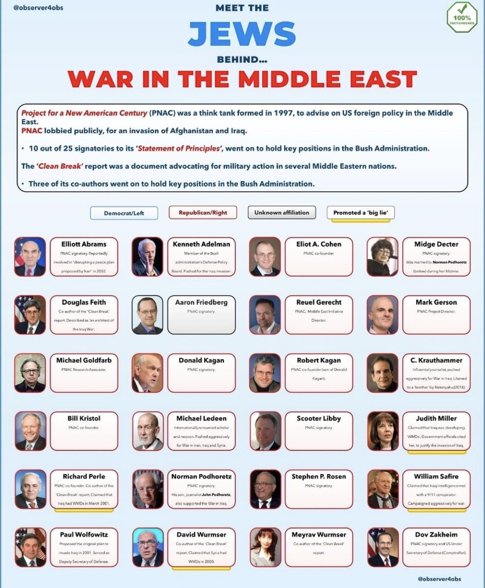 Who were the primary neocons behind the Iraq war? -Short answer, jews who wanted to eliminate multiple threats to Israel… 🧵 13/14 https://t.co/kVigrtgvCE