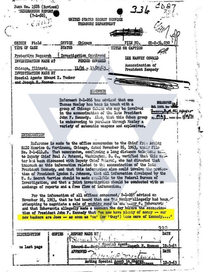 That’s why the Jewish Mob had Jack Rubenstein kill Oswald, Because Oswald would have beat the charges with the flimsy case, and it could have also led back to who actually killed Kennedy. He shot Oswald on live tv 📺2 days later when Oswald was being Transferred from City to County Jail. Jack Ruby, he is the key. When you focus on him, all the connections flow vividly. The standard story you will hear with Jack Ruby is that he was a low level person in the mafia, and just killed Oswald because of his love for Kennedy. Keep in mind, he didn’t go see Kennedy the day he was riding through Dallas, so this theory that he loves Kennedy is out of left field. But further, stop thinking of the Mafia as only Italians. Our Jewish controlled media wants you to think that, and it has mostly worked, but the Mob was mostly Jewish. Jack Ruby did have Jewish mob connections to both Meyer Lansky and Hyman Larner in Chicago, Both ✡️ Jewish mobsters with Lansky being the head of the operation. Further, the night before the Kennedy assassination, the FBI recorded that Ruby and Lawrence Meyers were together. Lawrence Meyers was another Jewish ✡️ mobster. Here’s where it gets really wild. Where was Ruby the day of the JFK assassination? He stated he was working as a translator for Israeli Newspapers 🗞️. Whether he was or wasn’t, he knew they would cover for him. Why was Ruby in Texas in the first place? It appears that he moved down there to help smuggle airplane parts out of TX to Israel… 🧵 10/12
