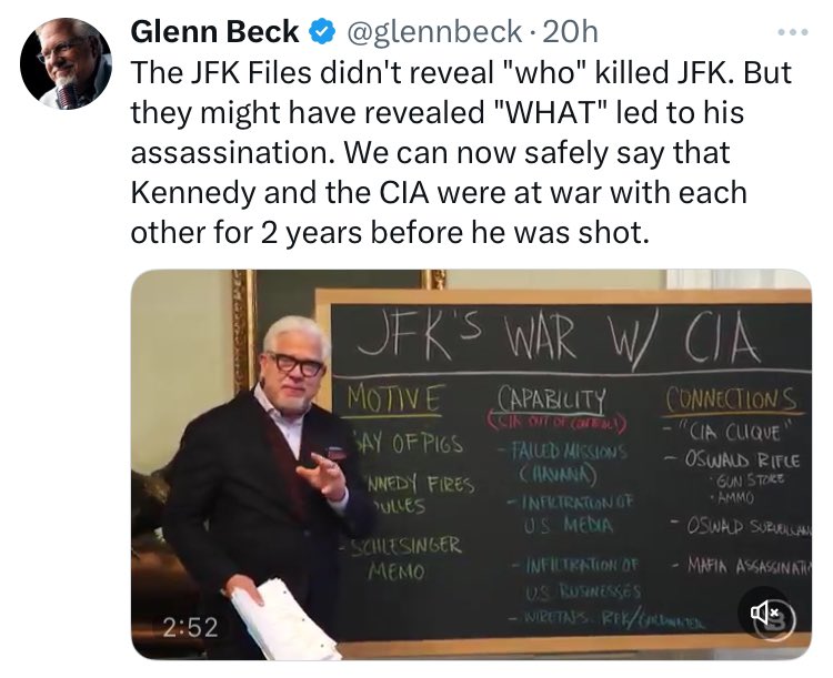 There would be literal Documents that say “our new backers are Jews, and they will take care of Kennedy” but Jewish controlled media would not even report on it, even now. Kosher controlled conservatives Glenn Beck who’s still spends time ignoring obvious evidence of Israeli involvement… and spends it all focusing on the CIA… 🧵 13/14