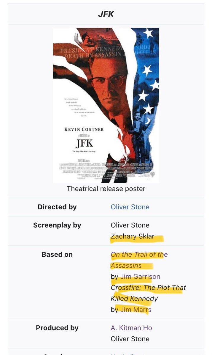 This is not the only example of controlled opposition, and intentional disinformation regarding the Kennedy shooting. Let’s go through some more. The most obvious one, is the Oliver Stone movie JFK. Oliver stone is Jewish. ✡️ His father’s original last name was Silverstein. Further the screenplay writer on the film was a Jewish ✡️ man named Zachary Skylar. The book written by Jim Garrison was published by a Jewish ✡️ publisher Sheridan Square, that had ties to Jewish ✡️ communist Irving Kristol. Irving Kristol is Bill Kristol father. Bill Kristol is one of the founders of the Jewish ✡️ neocon movement that led to the Iraq war. While i do think Jim Garrison was trying to do the right thing, I believe he couldn’t see past the gatekeeping and truly believed it was the CIA. 🧵 7/12