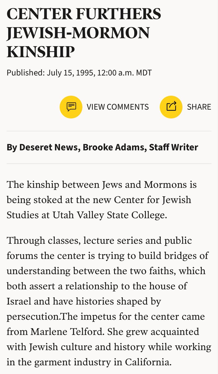In 1995, Erika Kirk’s Jewish uncle Jack Solomon was a board member for the new “Center of Jewish Studies” at Utah Valley State College. The goal of the center was to “bridge the gap between Jews and Mormons and guide the relationship with “Israel.” Charlie Kirk was murdered at that specific university… Receipts and more info below 👇 🧵 1/3