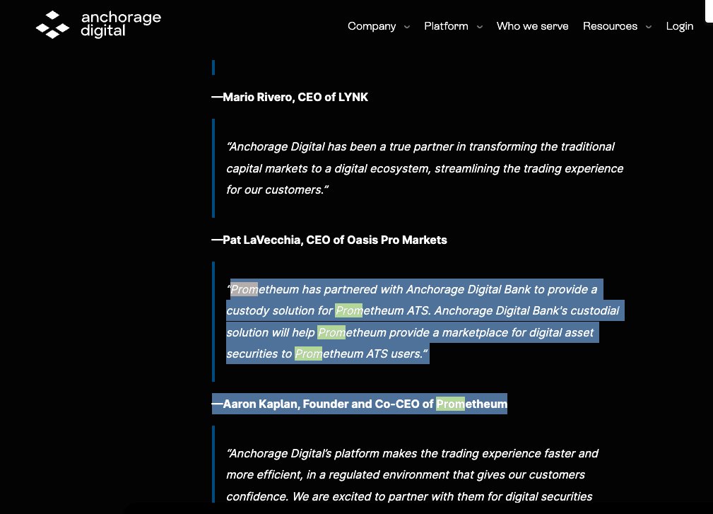 Ooo what I else found funny enough their partner Anchorage Digital removed the link from their website to #Prometheum website?? Why would they want to break the public seeing the connection when they are in bed together? It seems one of the pigs rolled in 💩 and they do not want to get caught in the 💩.. #ETHGate #HinmanEmails #SECGov @NerdNationUnbox @Leerzeit @gg_scaramanga @JohnEDeaton1 @AshleyPROSPER1 @MatthewLINY @digitalassetbuy @DigPerspectives @XRPArmyNews1 Interesting say the least!