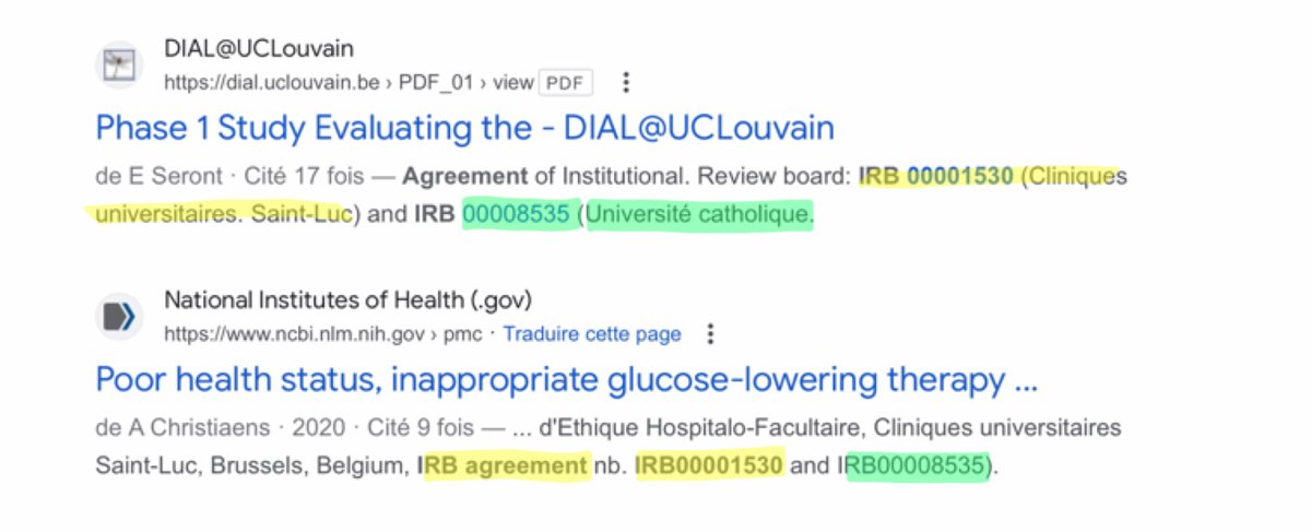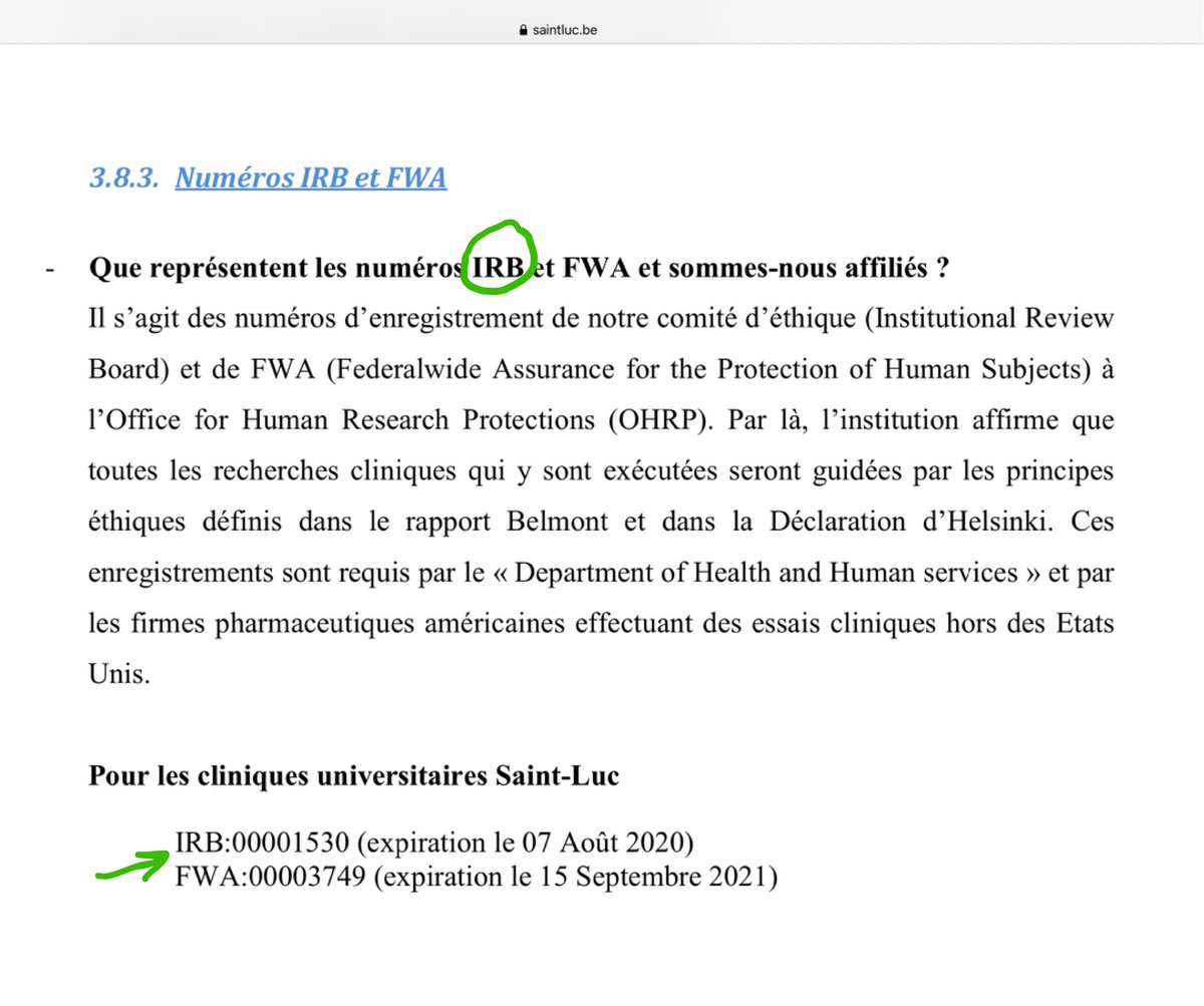 5/n On peut voir ici, par exemple, pour les Cliniques Universitaire Saint Luc à Bruxelles, que le numéro d’agrément IRB de leur comité d’éthique est le 00001530. https://t.co/lvGmvo9hYa