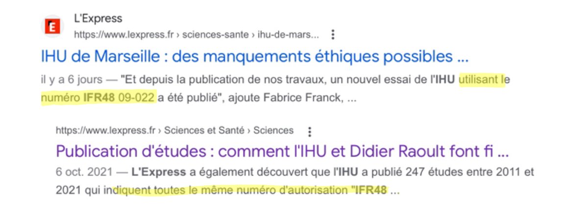 11/n Ce n’est pas la première fois que les auteurs confondent le numéro de reconnaissance d’une institution avec un numéro d’autorisation d’un comité d’éthique. Ainsi, dans l’Express, un des auteurs explique que l’IHU a encore publié une étude utilisant le numéro IFR48 09-022. https://t.co/TzgMkm05Qy