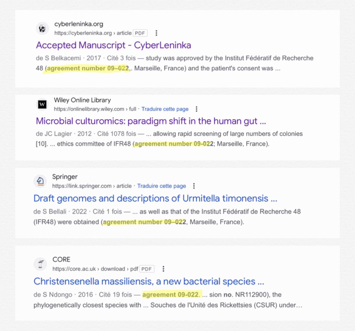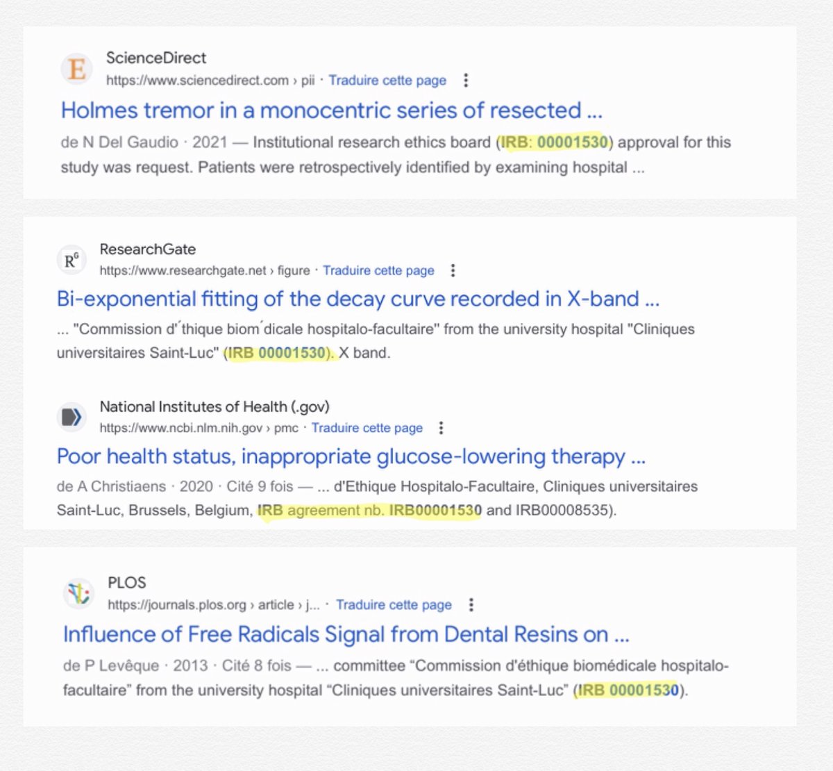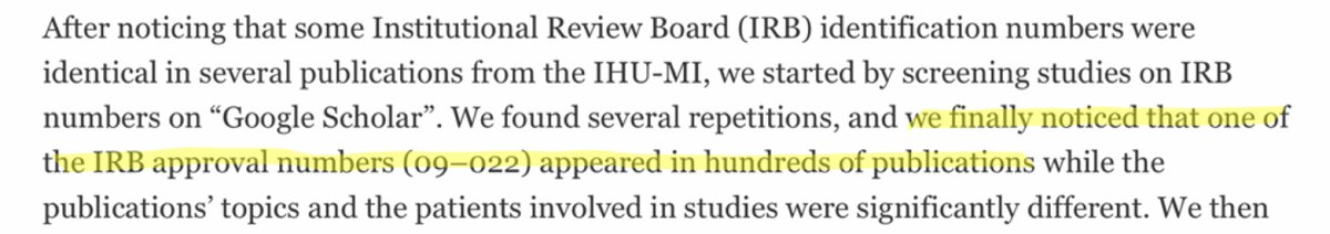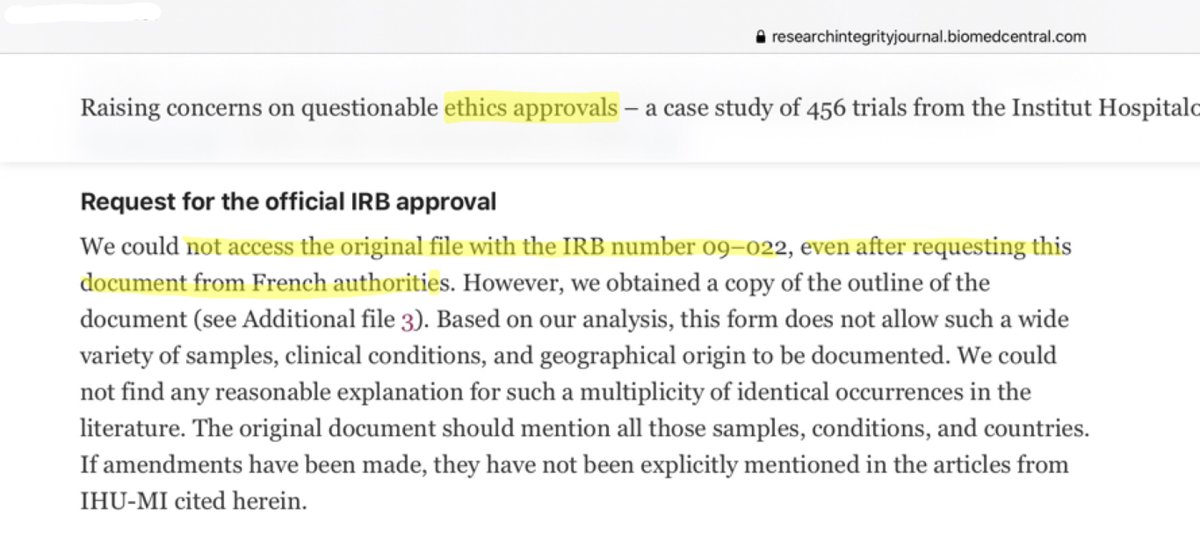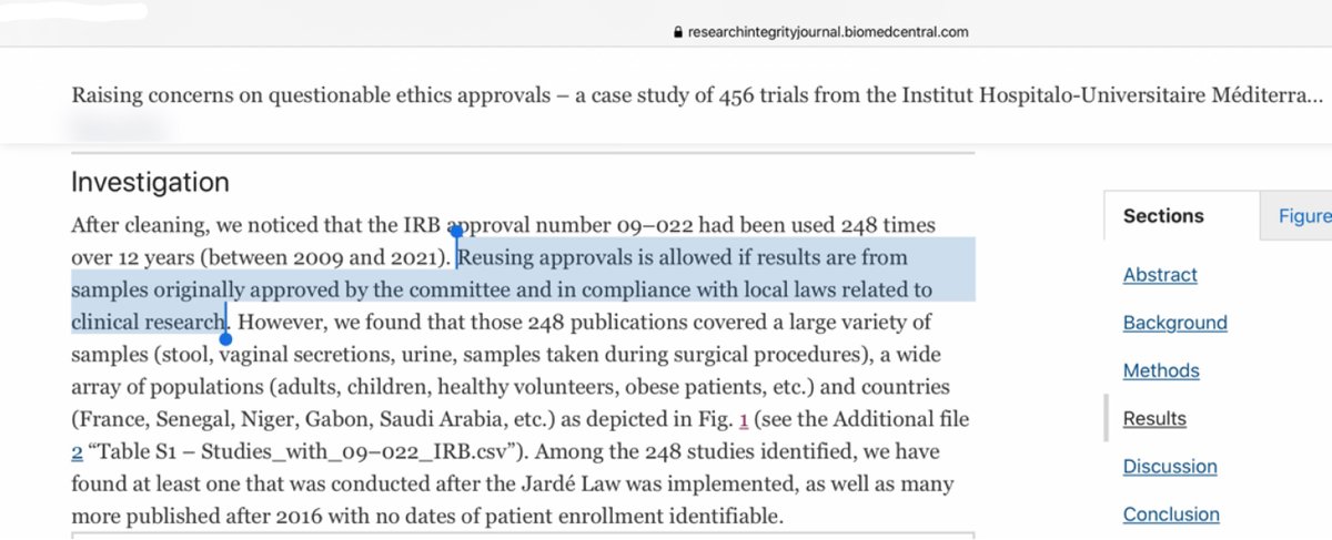 2/n En effet, ils s’inquiètent car ils ont remarqué que le numéro d'identification (IRB 09-022) était identique dans 248 publications. Ils disent avoir cherché le document original et ne pas l’avoir obtenu même en le demandant aux autorités françaises. https://t.co/tb681w0U0c