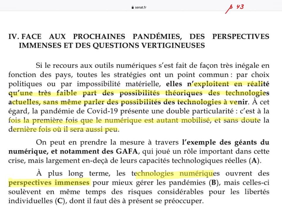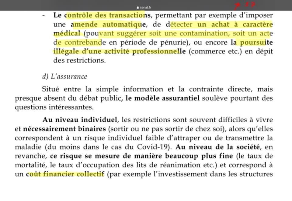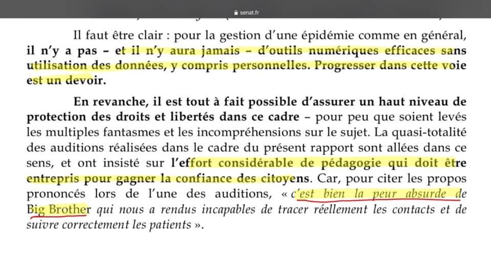 2/n Est-ce complotiste de s’inquiéter des propositions faite par les sénateurs d’utiliser les outils numériques pour contrôler les déplacements, l’état de santé, les fréquentations, les transactions... et pour appliquer des sanctions ?