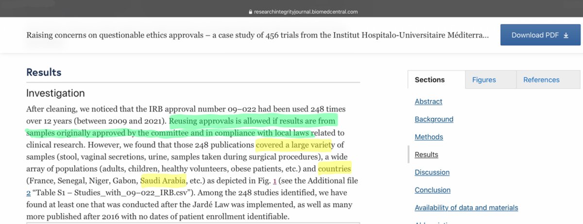 1/ Plus je creuse l’article accusant l’IHU de fraude éthique, plus je me demande si les hétéroclites ont lu les 248 publications qu’ils incriminent. Ils s’inquiètent de ce qu’il y ait une seule autorisation d’un comité d’éthique couvrant de nombreux pays. https://t.co/pZMcazU4Ks