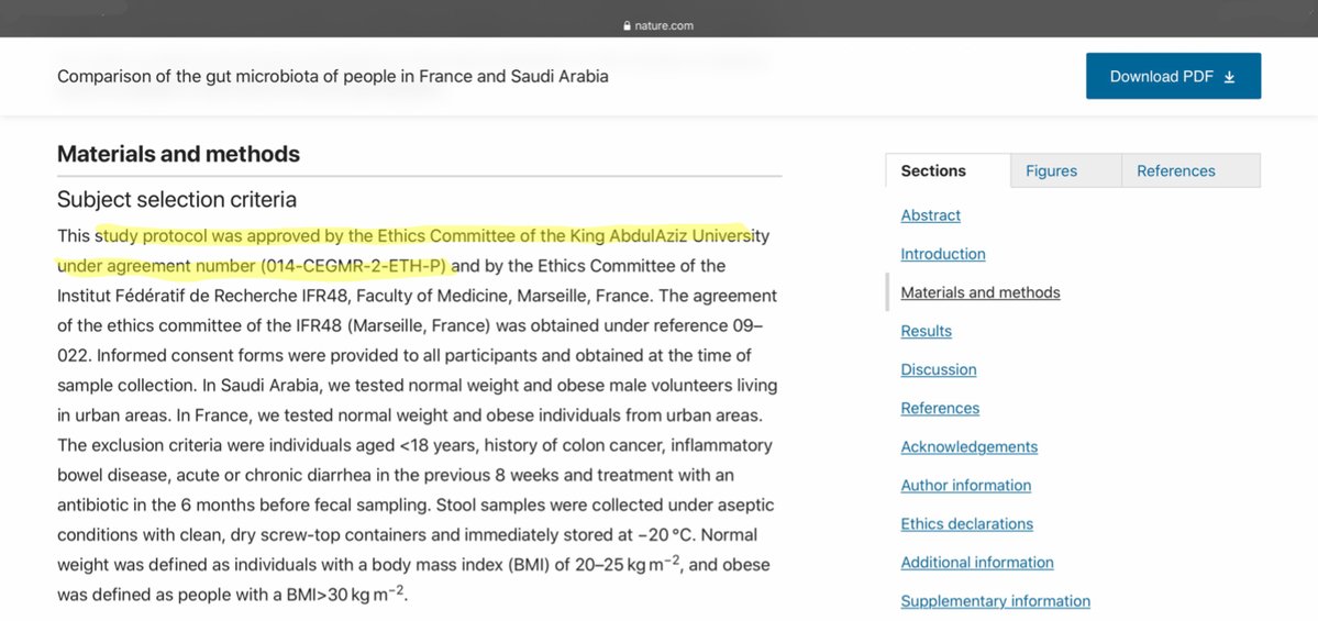 4/ Il suffit d’ouvrir le lien d’une de ces publications pour avoir la réponse à cette question : « This study protocol has been approved by the local Ethical Committee of the King Abdulaziz University, King Fahd medical Research Centre, (agreement number 014-CEGMR-2-ETH-P) » https://t.co/c3Q3CoWFFM