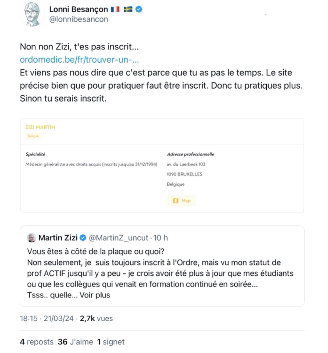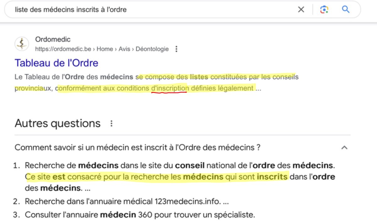 3/n Et s’ils le croient vraiment, une simple vérification Google suffit… : sur le site de l’Ordre figurent les médecins inscrits à l’Ordre… (et ceux qui ne sont pas inscrits à l’Ordre ne figurent pas sur le site de l’Ordre ;-) )