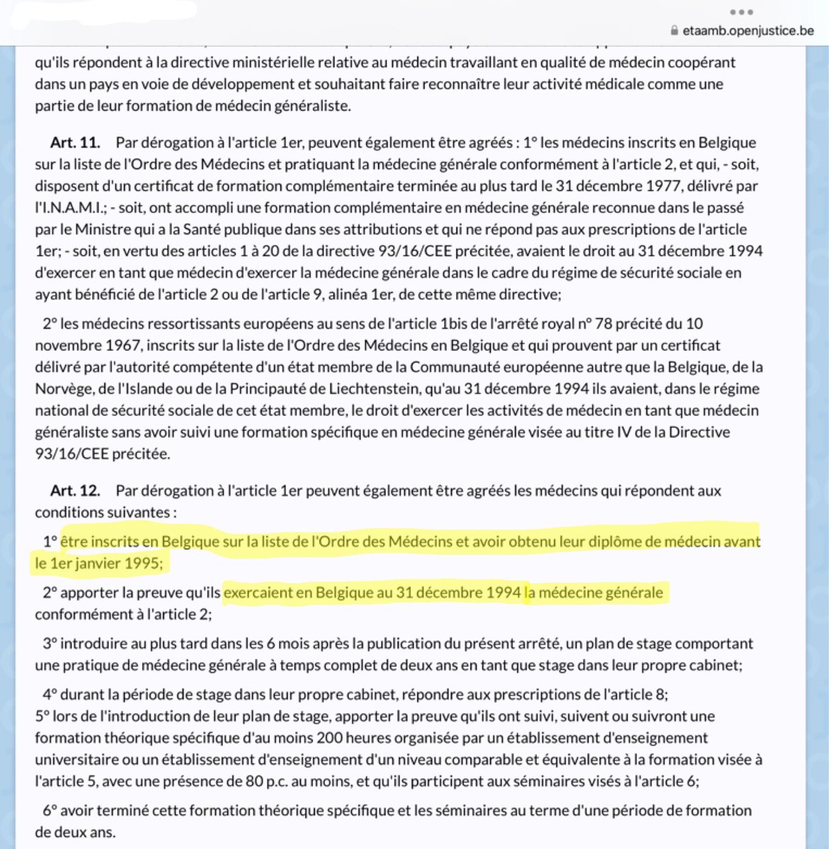 6/n Alors, pour comprendre ce que signifie cette mention, une autre simple recherche Google suffit aussi : elle concerne les médecins qui exerçaient la médecine générale au 31 décembre 1994 (donc tous ceux qui ont été diplômés avant cette date).