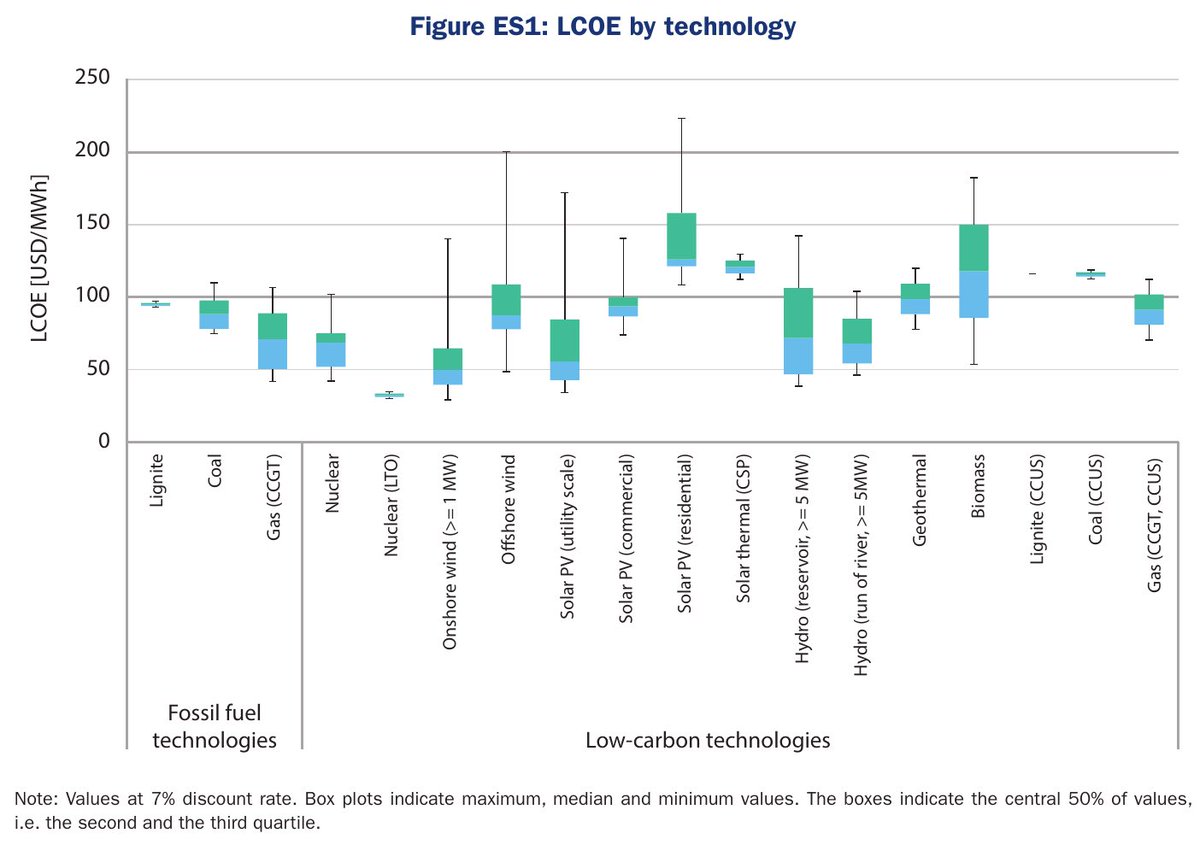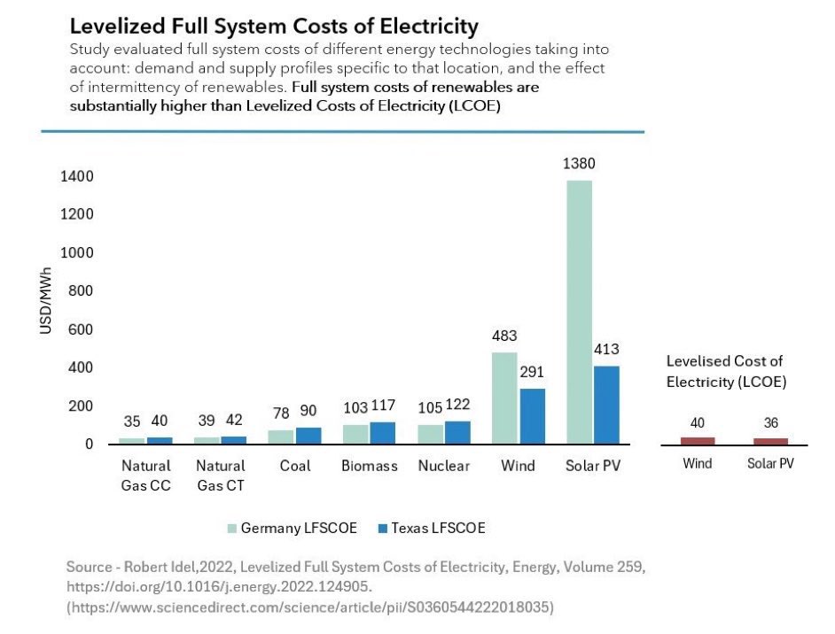 Nachtrag: der LCOE (Stromgestehungspreis) ist ohnehin keine geeignete Metrik für den Vergleich von gesicherter Leistung aus Kernenergie und nicht gesicherter Leistung aus Wind/PV, denn er unterschlägt die Systemkosten zur Absicherung volatiler EE. Der LFSCE👇🏼ist aussagekräftiger. https://t.co/AaCdrzjeRX