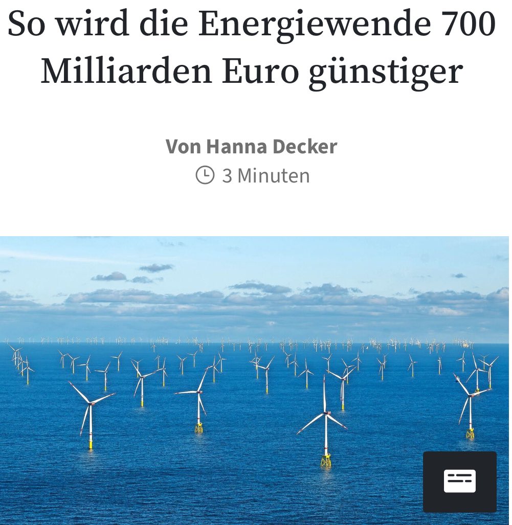 Der 🇩🇪EE-Fossil-Komplex, hier in Gestalt des @EnBW, zweifelt an der Energiewende mit 🇩🇪 „grünem“ Wasserstoff & Offshore-Windkraft-Hubs. Grund: das würde ein Kosten-Super-GAU. Doch sie bleiben unbelehrbar: Kernenergie bleibt tabu, Refossilisierung ist angesagt. 1/4