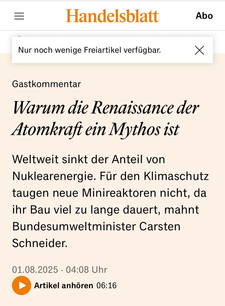 Hier ist der Beitrag von @ChrisStoecker zum Selberlesen. https://www.spiegel.de/wissenschaft/mensch/energiepolitik-atomkraft-ist-ein-totes-pferd-warum-steigt-merz-nicht-ab-kolumne-a-28065bde-deab-4042-b4f3-91b870e17ee9. Ich habe insgesamt 6 Fehler, Ungenauigkeiten & Falschaussagen gefunden, die in Qualitäts-Journalismus nichts zu suchen haben. 2