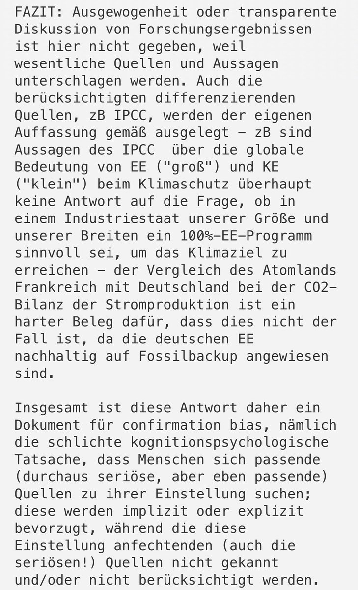 Die Ursache dieser Aussagen ist das bedauerliche, dem Klimaziel nicht dienliche Nullsummenspiel EE vs AKW, das in der deutschen EE-Forschungsszene Institutsraison ist, und die Selbstunterwerfung der Wissenschaft unter politische Zwecke. 2/5