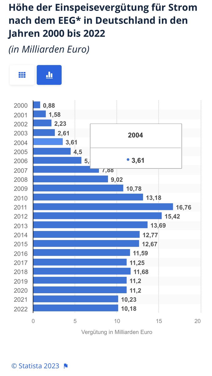 zweitens ist es bei den 🇩🇪Erneuerbaren genauso: die EEG-Umlage, die EE-Betreibern garantierte Profite ermöglicht, wurde zuerst von den Stromkunden bezahlt, seit 2 Jahren wird sie aus dem Bundeshaushalt, dh vom Staat aus Steuergeldern bestritten. 4