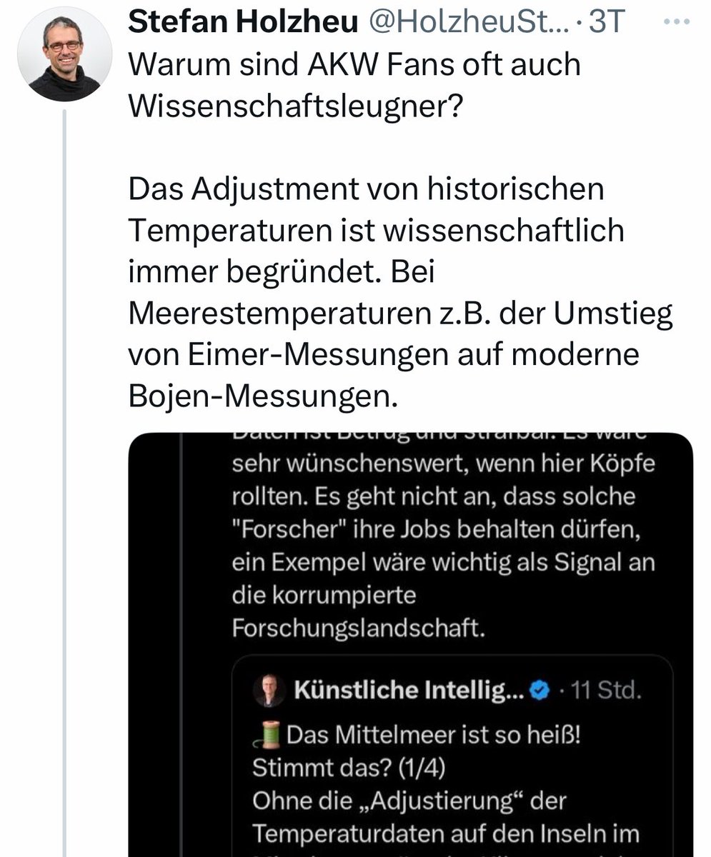 Diese Suggestivfrage von @HolzheuStefan soll sein Fühli stützen, AKW seien schon deshalb abzulehnen, weil ihre Befürworter „oft“ ihm unsympathische „Wissenschaftsleugner“ seien (er meint Leugner des anthropogenen Klimawandels) Doch diese Suggestion ist falsch. 1/4 https://t.co/z2iae0VqNy