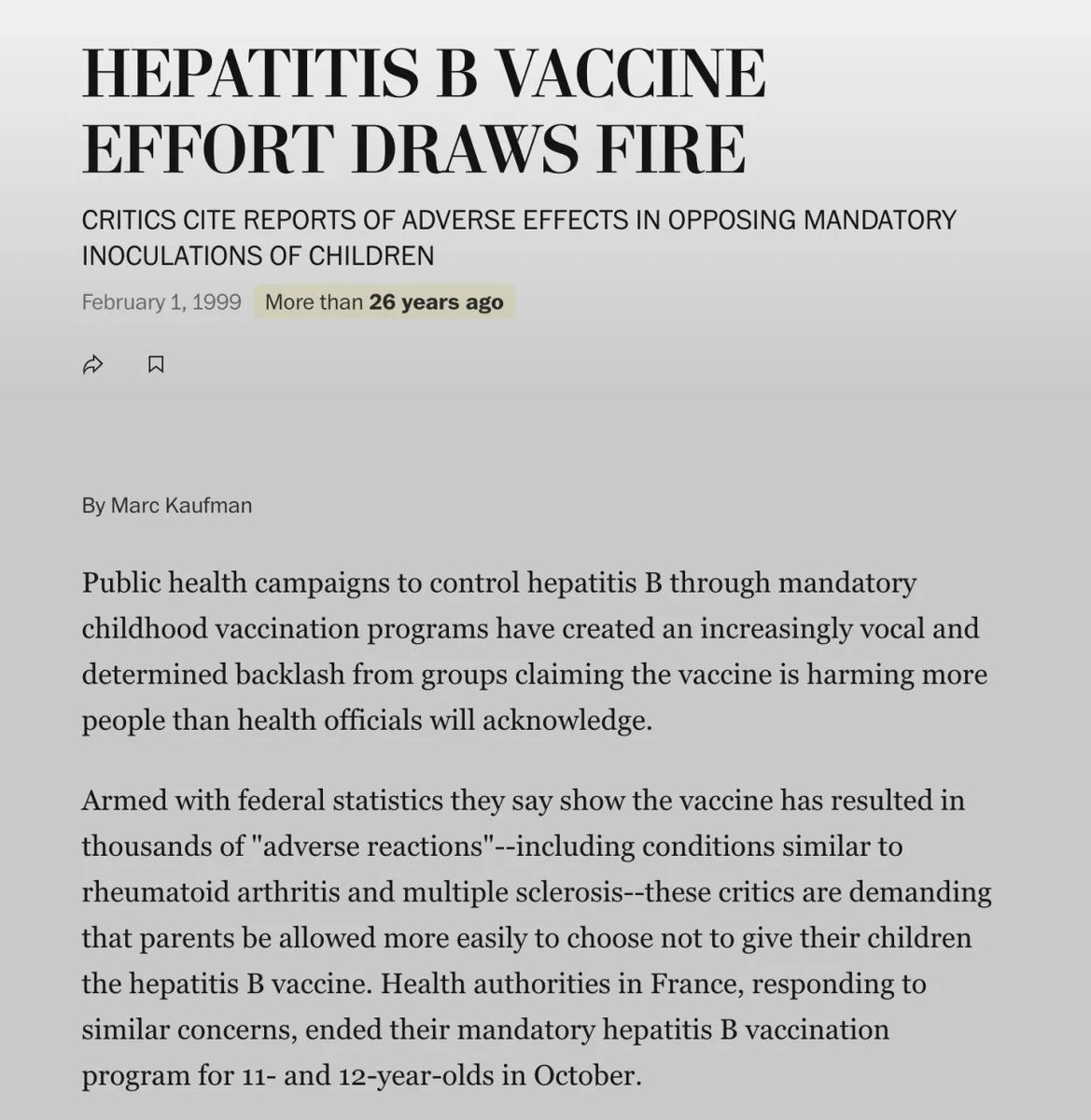 @MidwesternDoc The Hepatitis B vaccine is given at birth—but why? It’s a bloodborne disease that isn’t spread in infancy. What’s worse is that it’s been tied to autoimmune conditions and even sudden infant death. It is hands down one of the least justifiable vaccines on the schedule. https://t.co/ZAAYNo422a