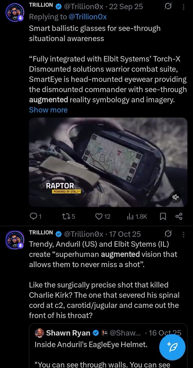 Who sold the Augmented Reality Patent that lined up the shot on.. @CharlieKirk11 UKR/RUS/ISIS/UTAH/NAG OPS Elbit Systems of America>Roanoke VA Roanoke🔻David Lopez TRILLION>Zelant>AR>Elbit>CK ZELANT>Slutsky>Oracle>Booz/EPA Lyashok>New Layer Capital>Pact Financial>Miles Romney https://t.co/Wdx3nivcEh
