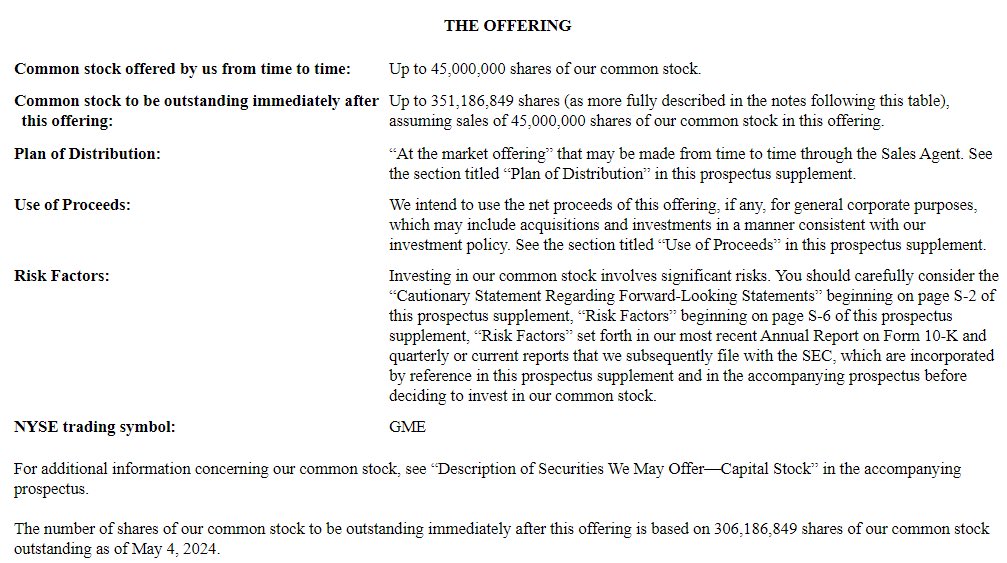 JUST IN: GameStop files to sell up to 45 million shares. https://t.co/KlzlQqZAeq